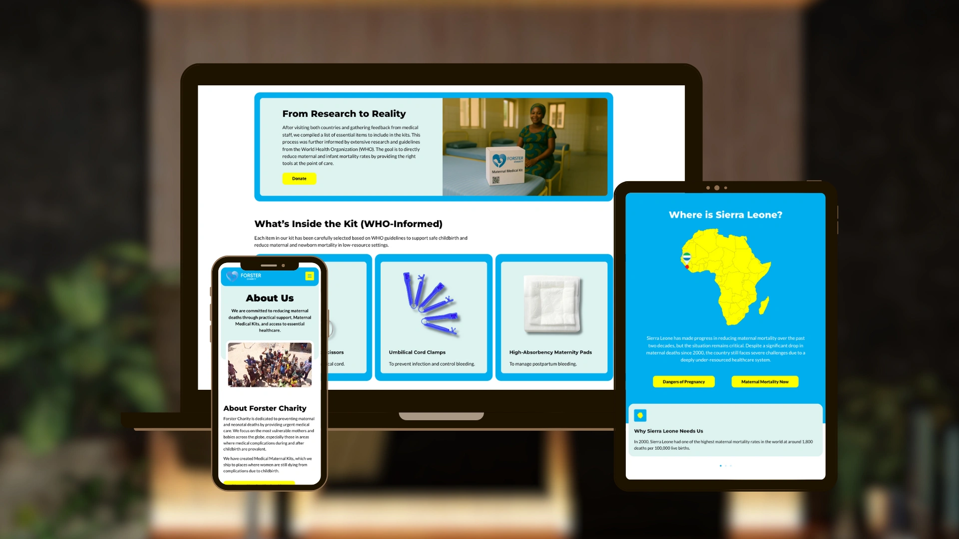 Forster Charity is a maternal health charity based in London, founded to support women in need of safe maternal care, starting in Sierra Leone. As a newly established organisation, the charity needed a website that clearly communicated its mission while building trust and legitimacy from day one.