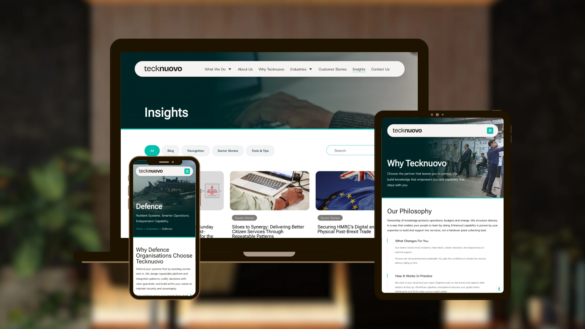 Tecknuovo is a UK-based technology consultancy delivering large-scale digital transformation across enterprise, government, and critical infrastructure. As a nationally recognised business operating in highly regulated environments, the quality, performance, and reliability of its website needed to reflect that standing.